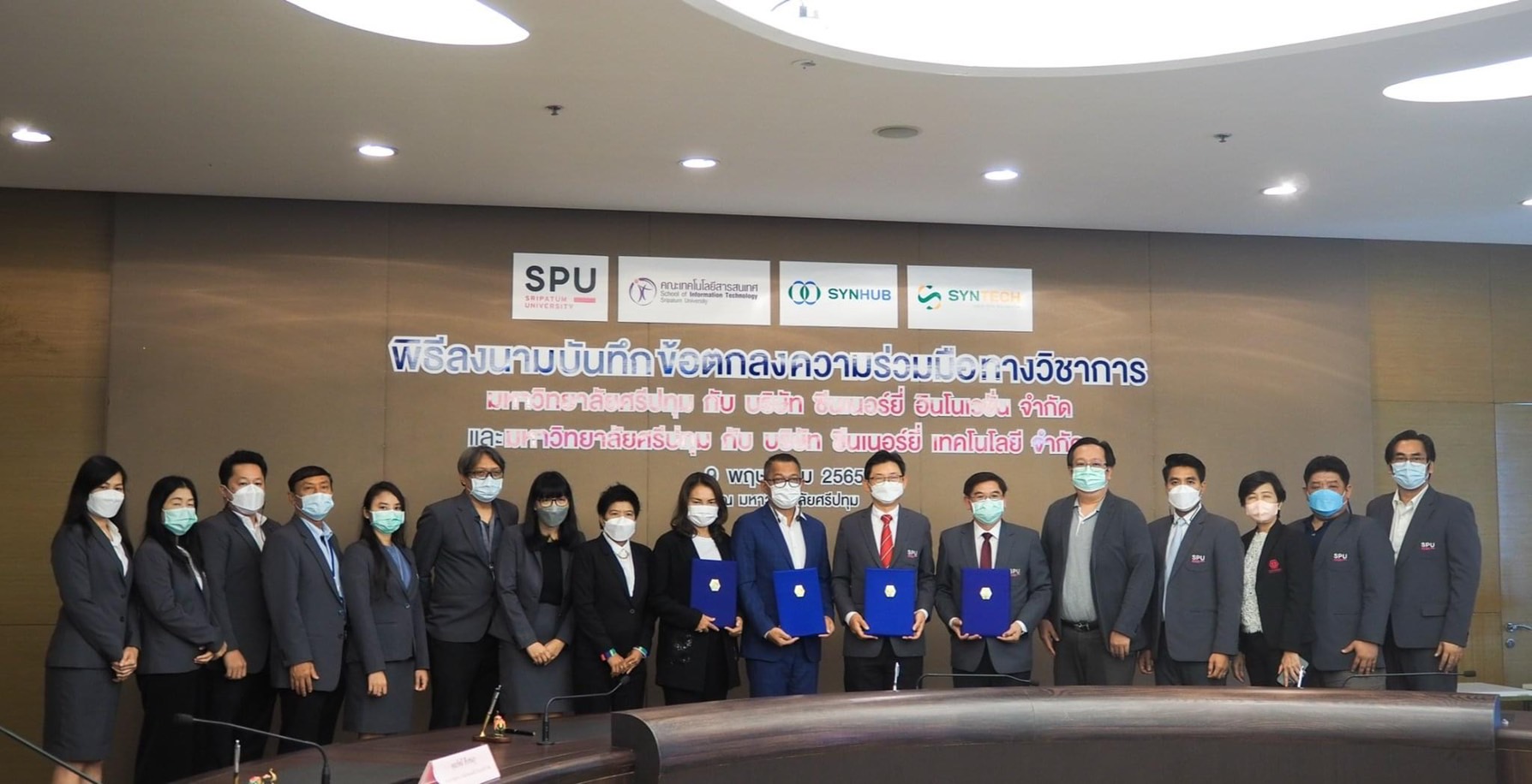 SYNHUB และ SYNTECH ได้ร่วมลงนามบันทึกข้อตกลงความร่วมมือทางวิชาการ (MOU) ร่วมสนับสนุนพัฒนาเทคโนโลยี งานวิจัยและนวัตกรรมกับ คณะเทคโนโลยีสารสนเทศ ม.ศรีปทุม