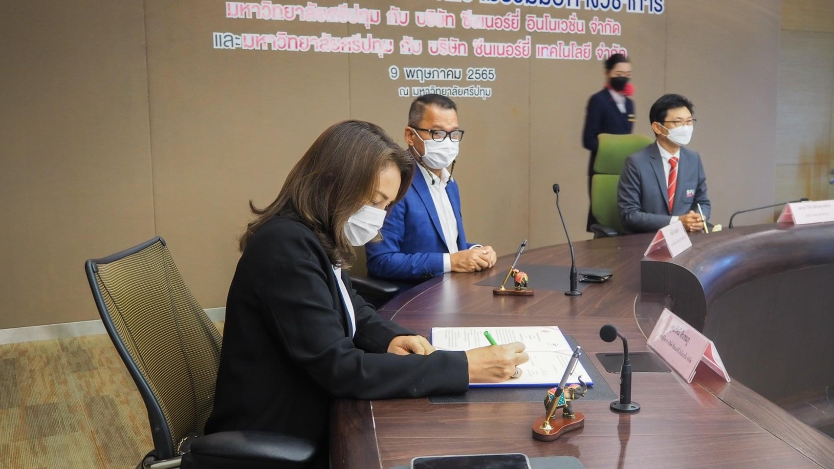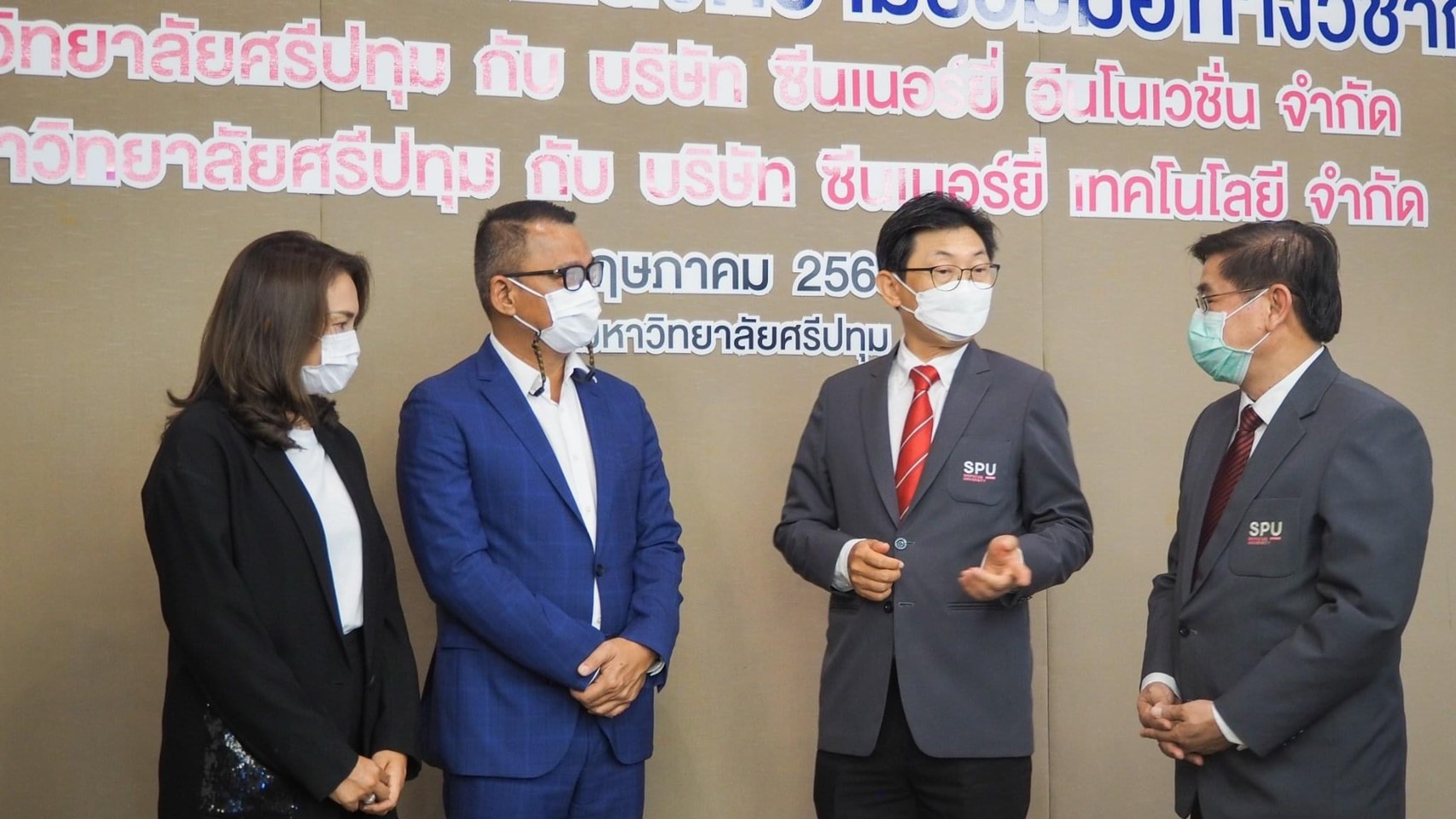 โดย นายนิติ เมฆหมอก และ นางสาวรัศมี สืบชมภู กรรมการผู้จัดการ บริษัท ซีนเนอร์ยี่ เทคโนโลยี จำกัด และบริษัท ซีนเนอร์ยี่ อินโนเวชั่น จำกัด ร่วมลงนามบันทึกข้อตกลงความร่วมมือทางวิชาการ (MOU) ระหว่าง มหาวิทยาลัยศรีปทุม(SPU) กับผู้ช่วยศาสตราจารย์ ดร.วิรัช เลิศไพฑูรย์พันธ์ รองอธิการบดี มหาวิทยาลัยศรีปทุม พร้อมด้วย ผู้ช่วยศาสตราจารย์ ดร.ธนา สุขวารี คณบดีคณะเทคโนโลยีสารสนเทศ มหาวิทยาลัยศรีปทุม เพื่อสร้างเครือข่ายความร่วมมือทางวิชาการ ในการส่งเสริมและสนับสนุนด้านวิชาการ งานวิจัยและนวัตกรรมใหม่ๆตลอดจนการสนับสนุนกิจกรรมทางด้านวิทยาการและเทคโนโลยีที่เกี่ยวข้องกับความรู้ทางด้าน IOT(Internet of Things) อันจะก่อให้เกิดประโยชน์สูงสุดด้านกระบวนการเรียนรู้ และนำมาใช้ในการเรียนการสอนให้กับนักศึกษาในอนาคต ณ ห้อง Board Room อาคาร 11 ชั้น 14 มหาวิทยาลัยศรีปทุม กทม.(บางเขน) เมื่อวันจันทร์ที่ 9 พฤษภาคม 2565