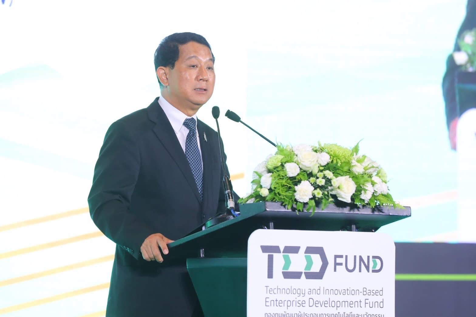 ศ.ดร.นพ.สิริฤกษ์ ทรงศิวิไล ปลัดกระทรวงการอุดมศึกษา วิทยาศาสตร์ วิจัยและนวัตกรรม กล่าวว่า กองทุนพัฒนาผู้ประกอบการเทคโนโลยีและนวัตกรรม (TED Fund) มีภารกิจในการสนับสนุนทุนด้านการดำเนินธุรกิจ การพัฒนาศักยภาพผู้ประกอบการด้านเทคโนโลยีและนวัตกรรม เพื่อส่งเสริมและสนับสนุนการเพิ่มขีดความสามารถทางการแข่งขัน พร้อมทั้งสร้างเครือข่ายผู้สนับสนุนการร่วมลงทุนและสนับสนุนเครือข่ายบ่มเพาะผู้ประกอบการเทคโนโลยีและนวัตกรรมให้ประสบความสำเร็จเชิงธุรกิจอย่างยั่งยืน สามารถนำผลงานวิจัยและนวัตกรรมไปต่อยอดใช้ประโยชน์ในเชิงพาณิชย์ และร่วมผลักดันประเทศไทยไปสู่เศรษฐกิจที่ขับเคลื่อนด้วยนวัตกรรม